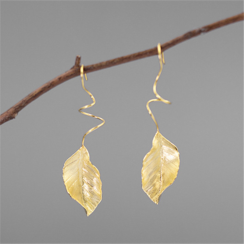 Chinese-Style Personality Ancient Autumn Leaf Earrings Studs Artistic Retro Elegant Temperament S925 Sterling Silver Texture National Style National Trend