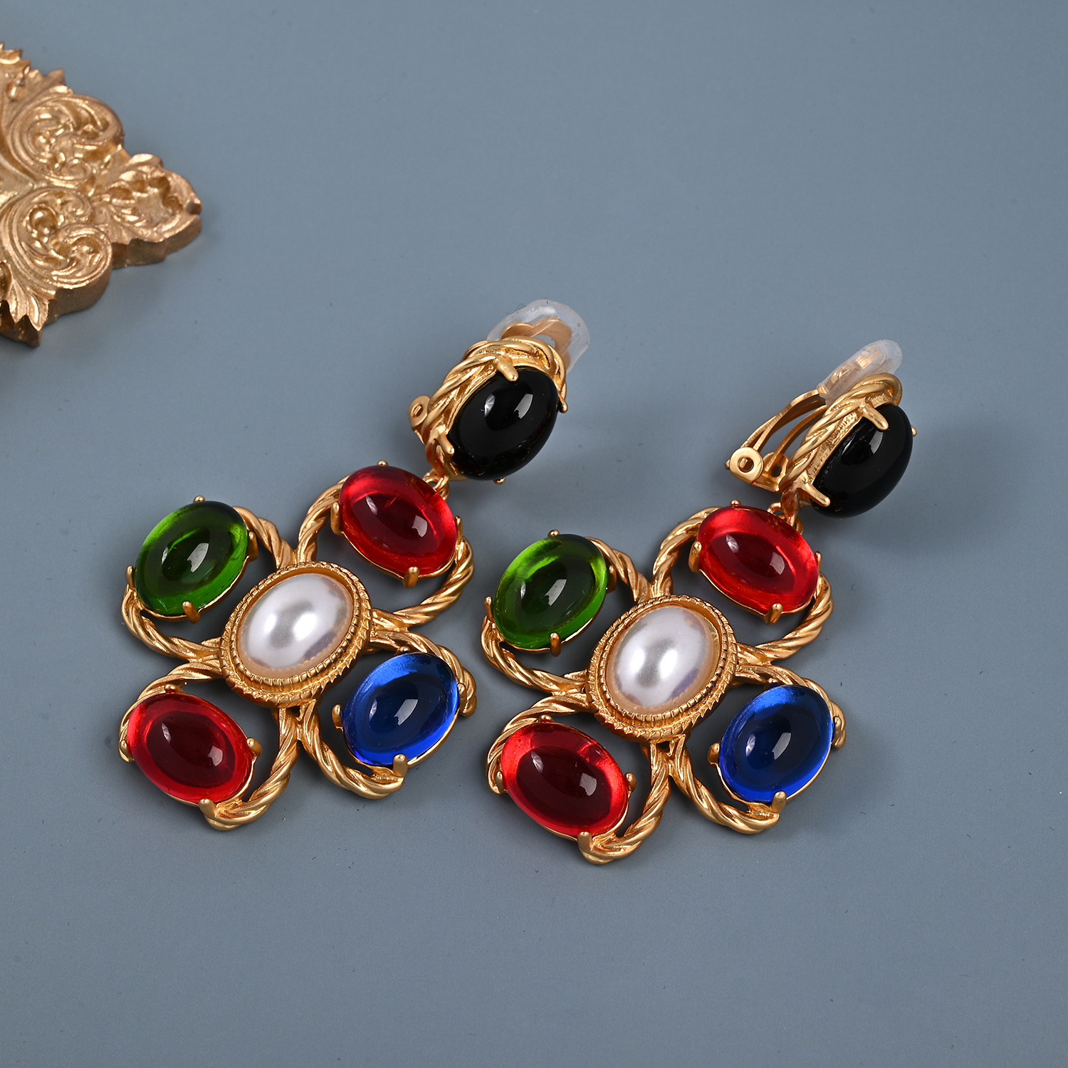 Donkey Letter Pearl Earrings Brass Earrings Light Luxury High-End Earrings Retro Earrings Ear Clip Jewelry Tail Goods