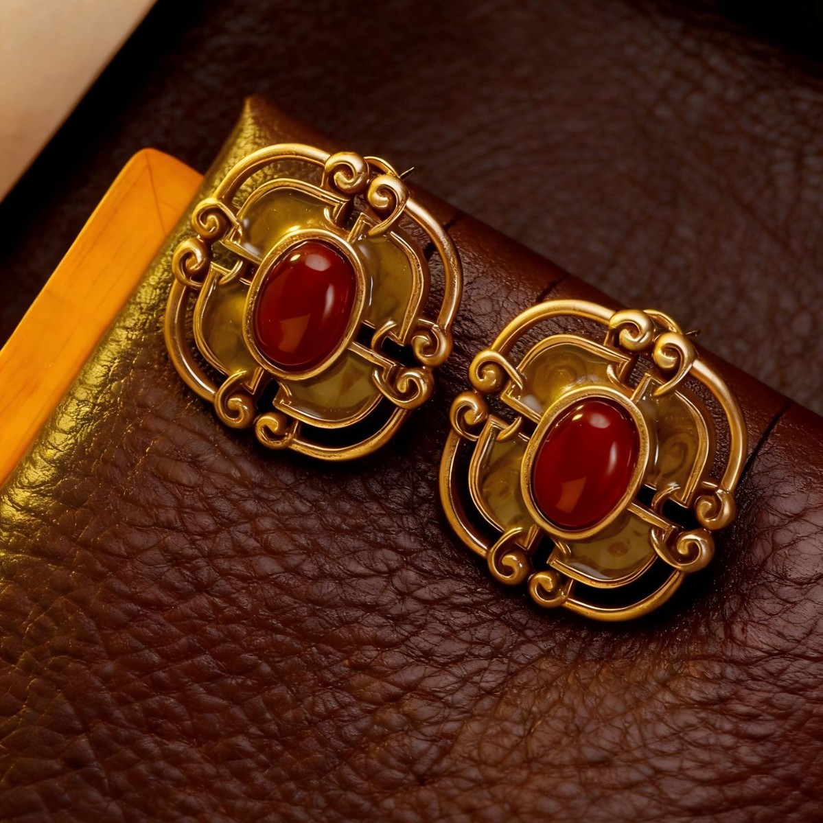 Vintage Imitation Agate Earrings, Retro Heavy Craftsmanship Palace Style Earrings, New Chinese Style Cloud Pattern Earrings