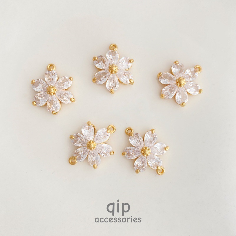 Zircon Six-Petal Flower Color-Preserving Copper Micro-Inlaid Super Shiny Fresh Flower Pendant DIY Earring Pendant Hairpin Jewelry Accessories