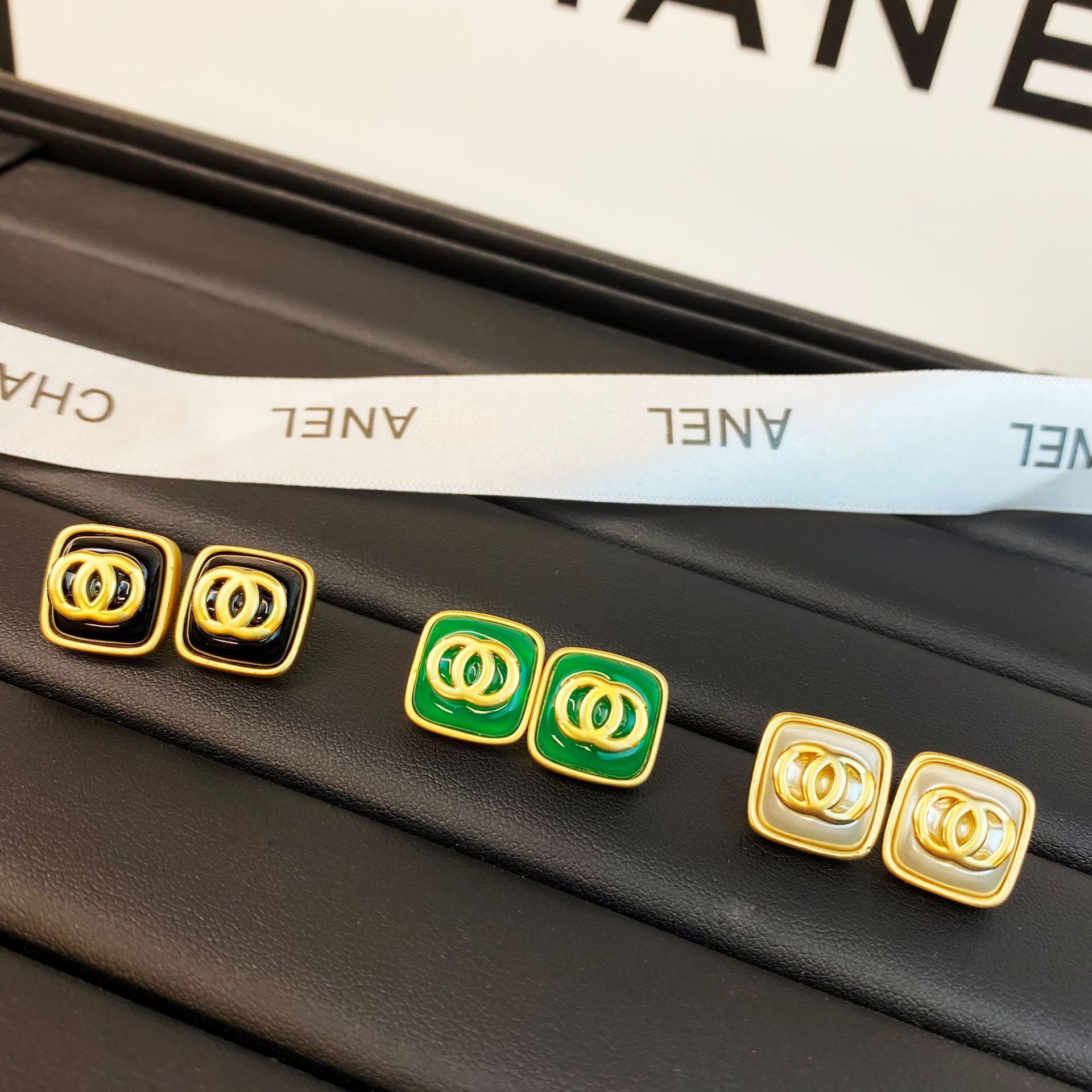 Chanel style double C classic all-match earrings personality fashion all-match mid-ancient earrings Internet celebrity same style earrings ins fashion women