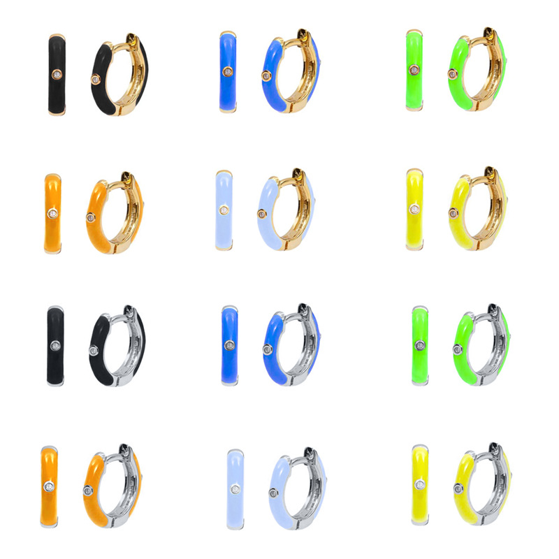 Colorful round earrings women 2021 fashion drop oil earrings In zircon crystal Hug gie earrings