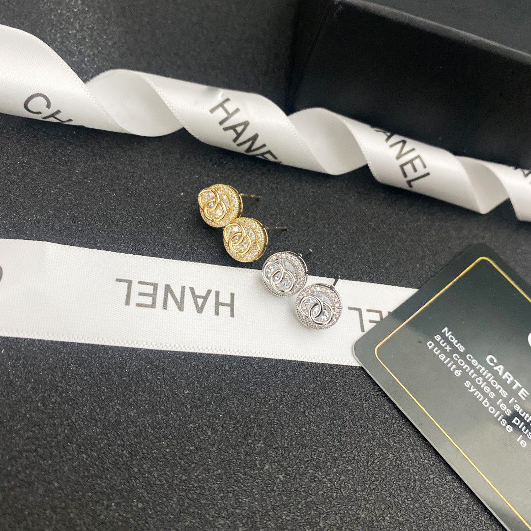 New Chanel style double C shiny small stud earrings Mini small zircon sterling silver needle lightweight all-match light luxury earrings for women