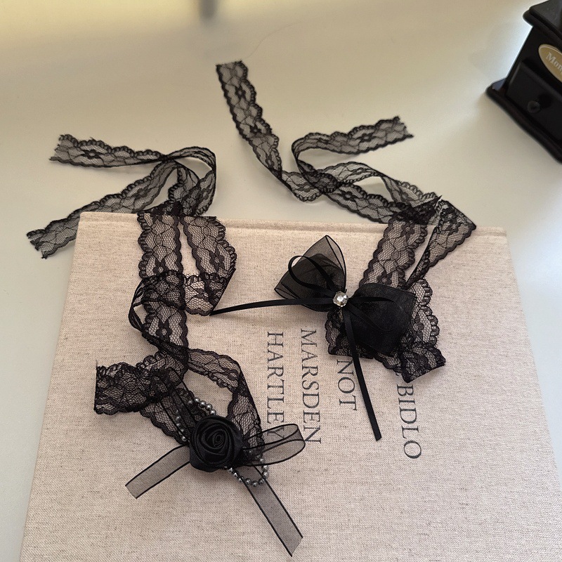Sexy Black Lace Long Fabric Necklace Pure Lust Style Bow Clavicle Chain Women's Neck Strap Waist Chain Multi-Purpose