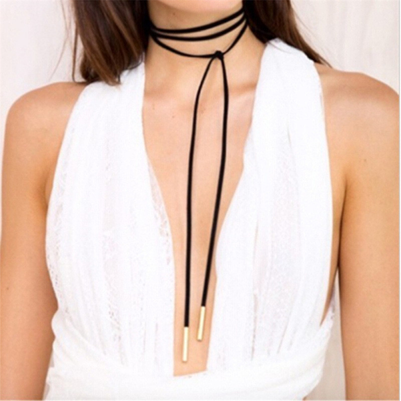 European and American Simple Ethnic Style Korean Velvet Long Knotted Stacked Beach Necklace Sexy Bikini Clavicle Chain