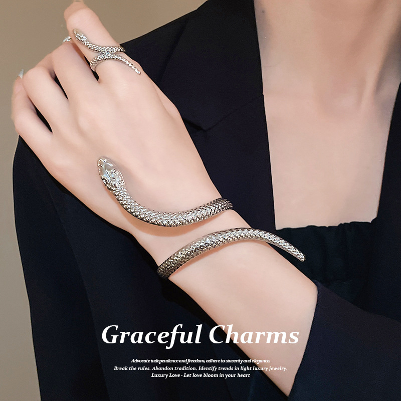 European and American Cross-Border Metal Snake-Shaped Bracelets, Rings, Jewelry Sets, Personalized and Trendy Sexy Armbands for Men and Women
