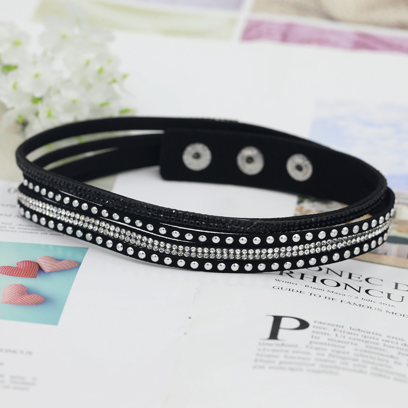 Shiny Gemstone Hollow Choker Neck Strap Sexy Collarbone Chain Leather Rope Jewelry Choker Necklace Bracelet Dual-Use