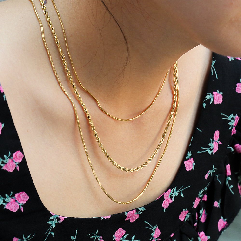 European and American ins blogger with sexy three-layer twist snake bone titanium steel electroplating 18K gold high color necklace