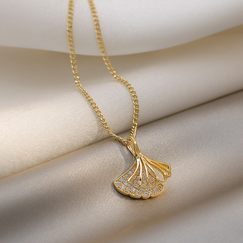 New Double Ginkgo Leaf Fan Necklace Internet Celebrant Titanium Steel Micro-inlay Pendant Clavicle Chain Niche Sexy Collar Chain