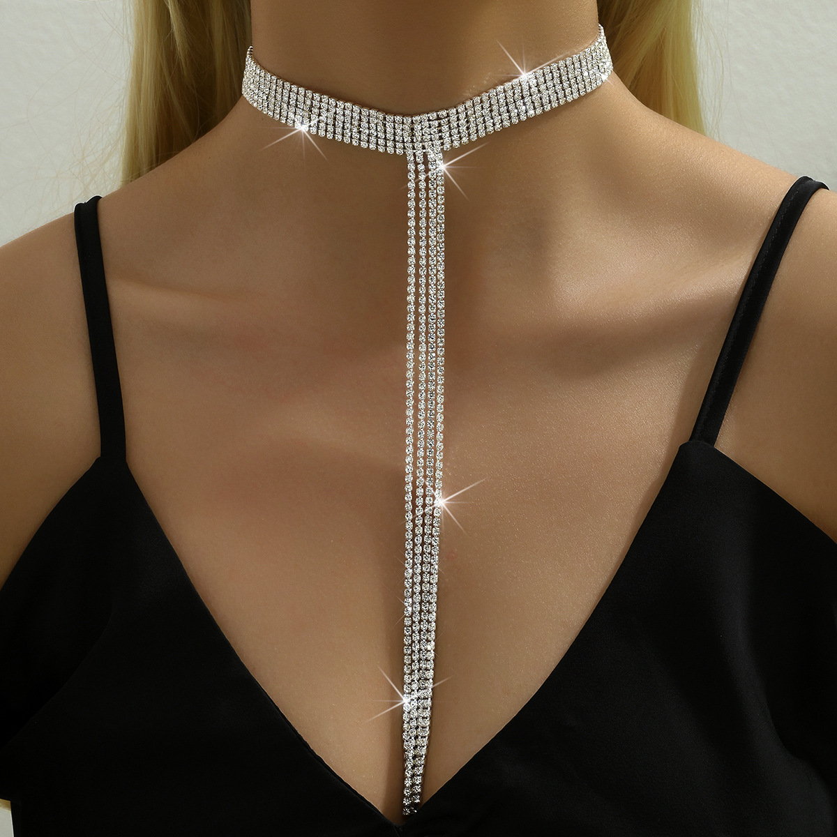 European and American Sexy Cyber Popular Super Flash Rhinestone Neck Chain chocker Clavicle Chain Women's Neck Jewelry South Korea Short Necklace