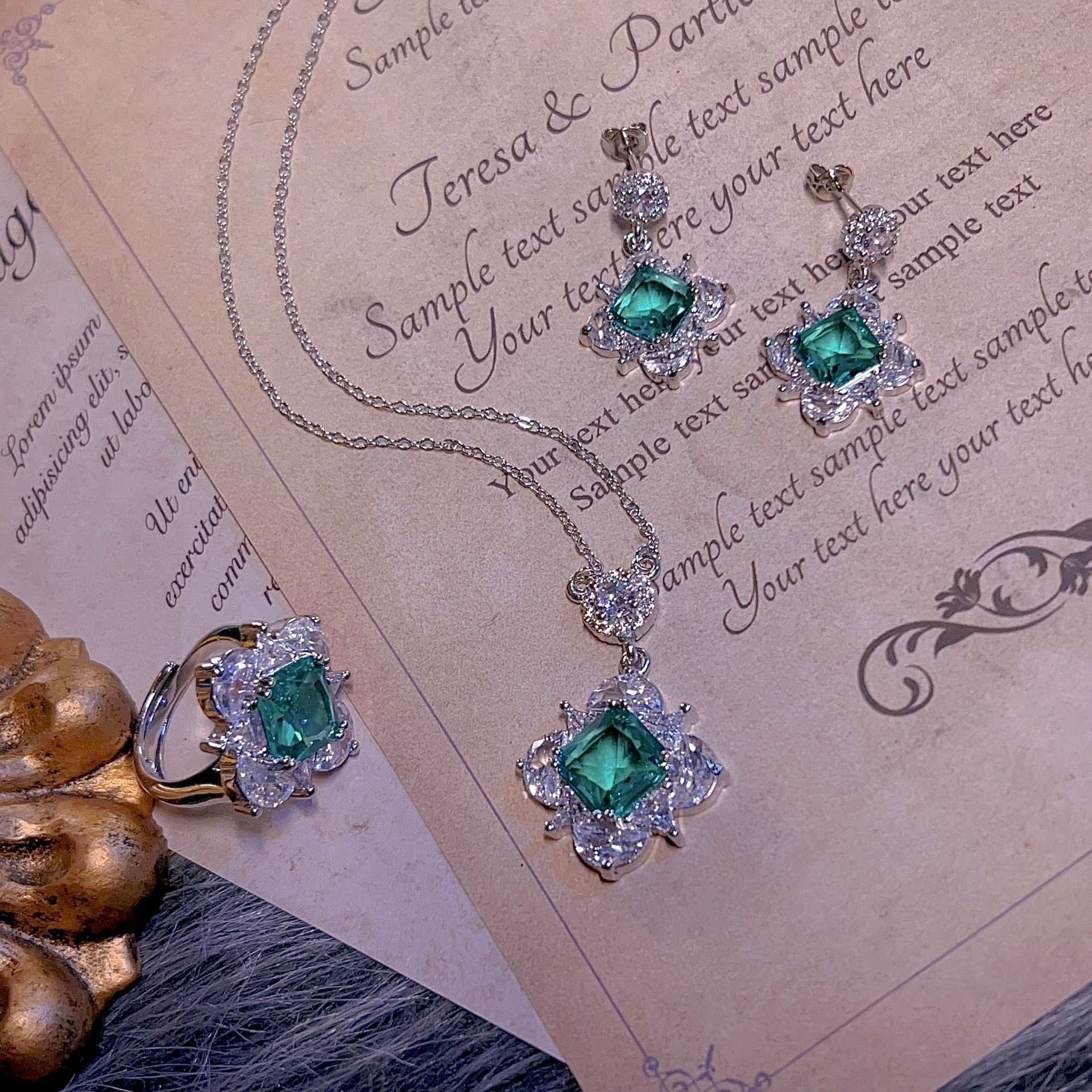 European and American high-grade emerald gem suit necklace earrings ring sexy temperament zircon heavy industry light luxury personality
