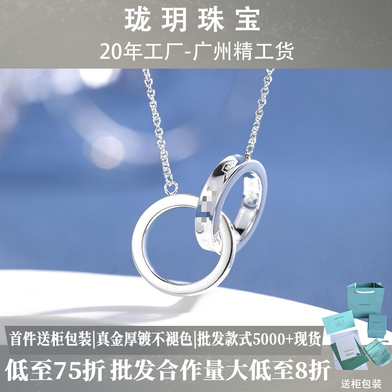 Necklace for Women Korean Style Double Ring Women's Necklace with Diamonds Fashionable Clavicle Chain Women's Pendant Simple Sexy Accessories Internet Celebrity Creative