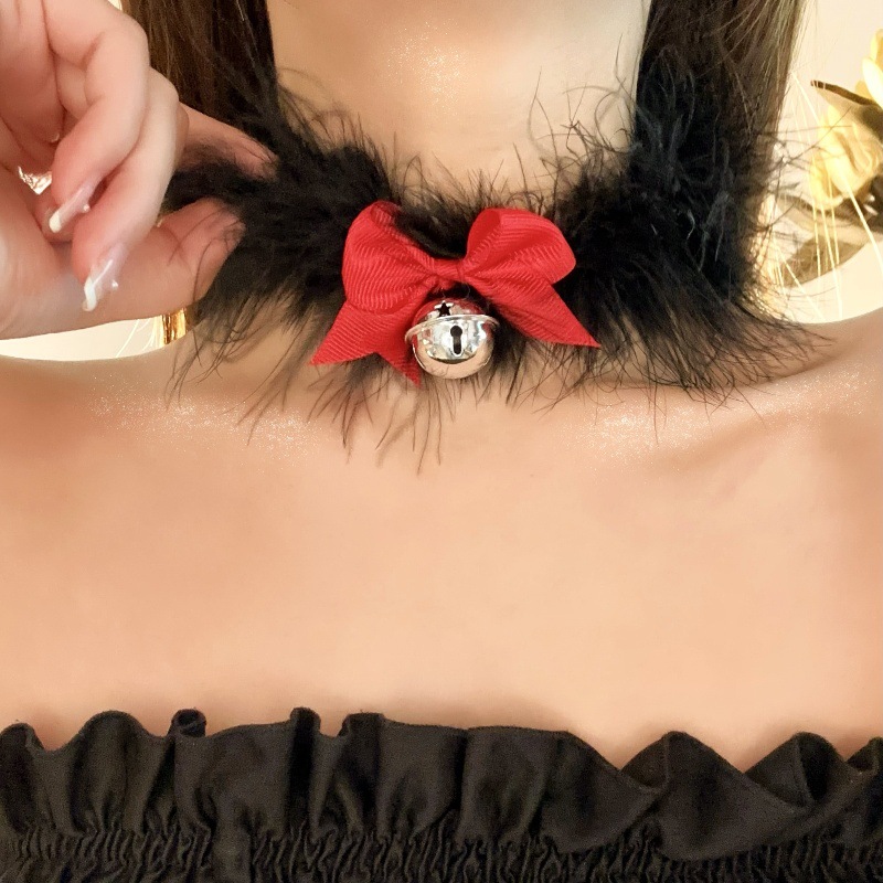 Pure Spice Girl Plush Fluffy Bell Collar Sexy Choker Necklace Autumn and Winter Feather Clavicle Chain Necklace Women