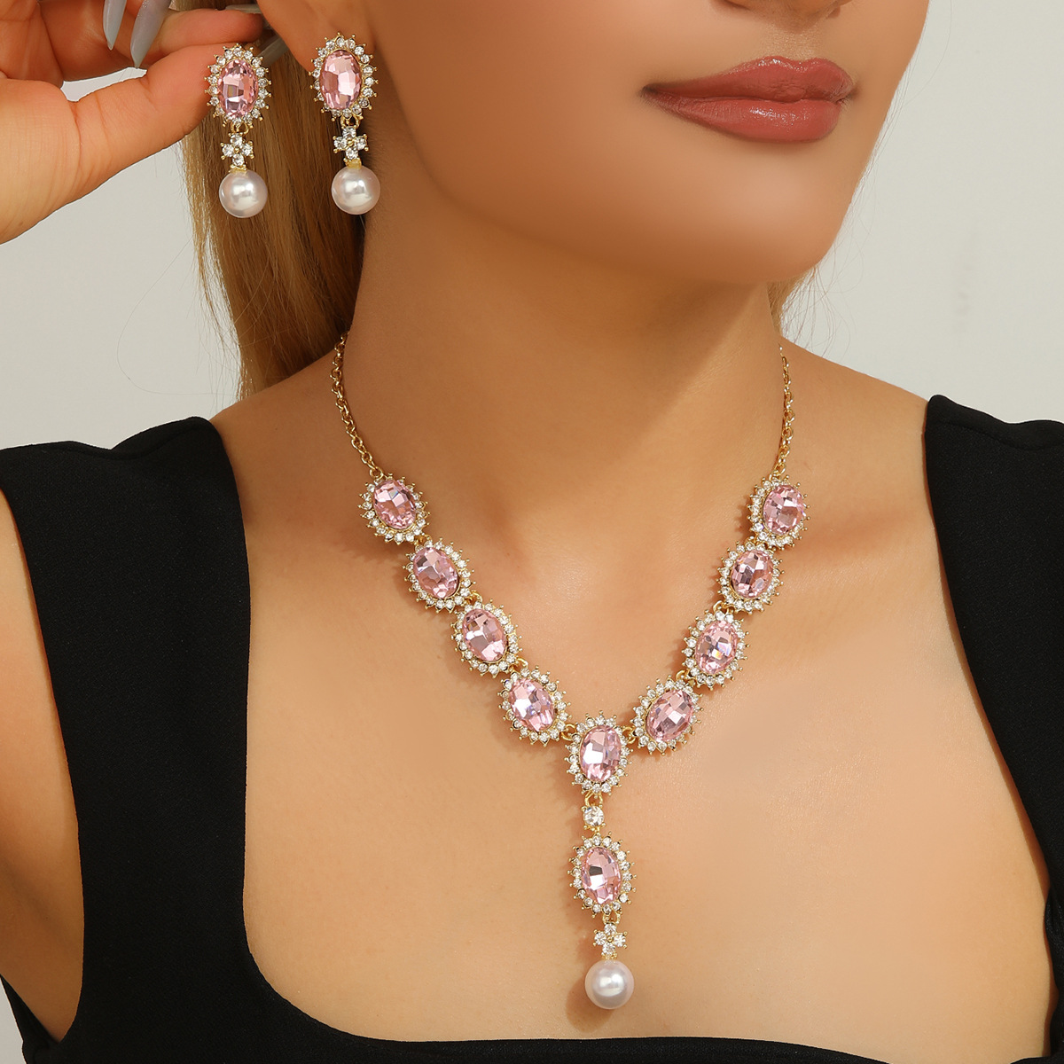 European and American sexy bright beads silk scarf design collar necklace earrings suit personality exaggerated triangle scarf clavicle chain