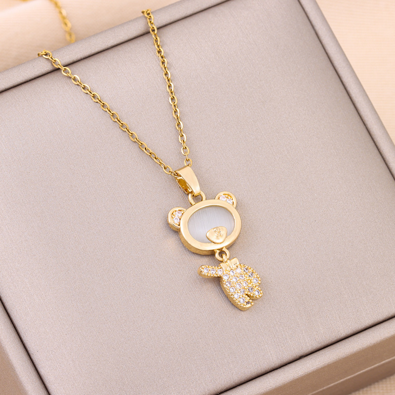 Bright Hair New Sweet Cute Diamond Cat's Eye Bear Titanium Steel Necklace Elegant Sexy Girlfriend Same Style Clavicle Chain