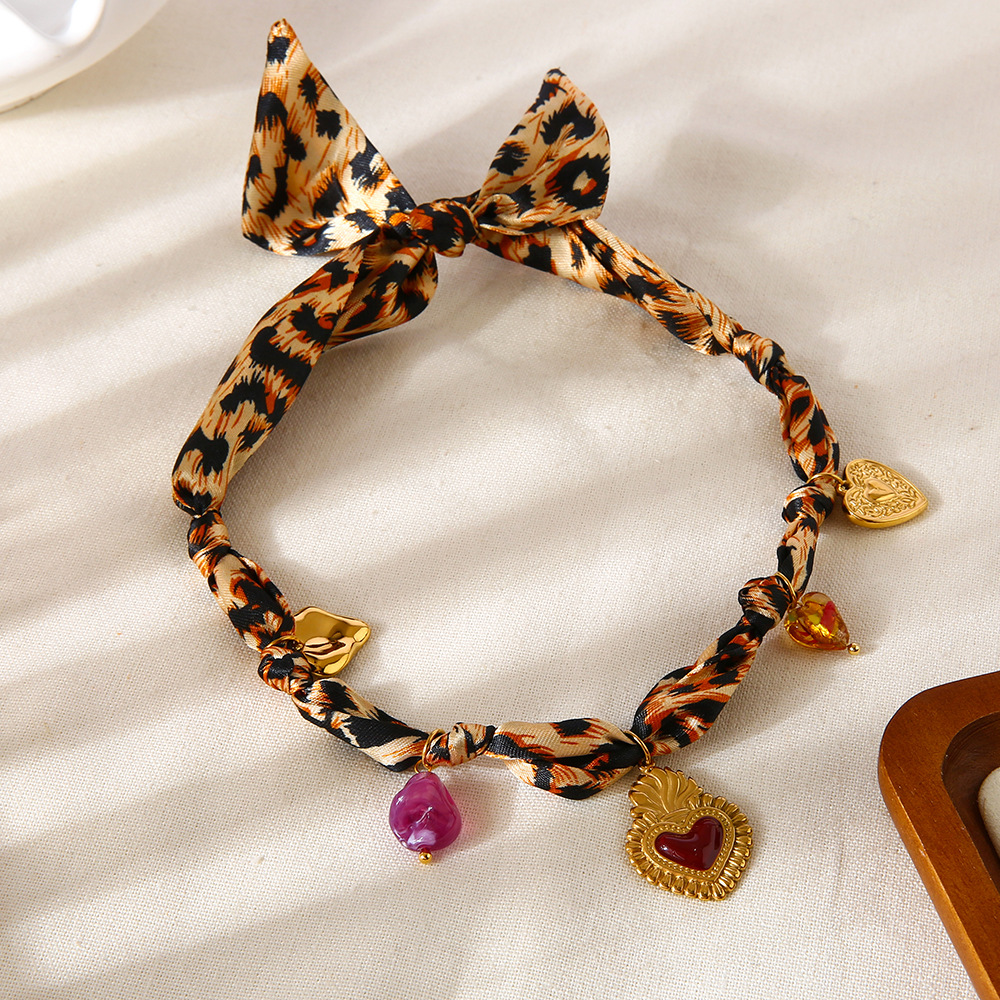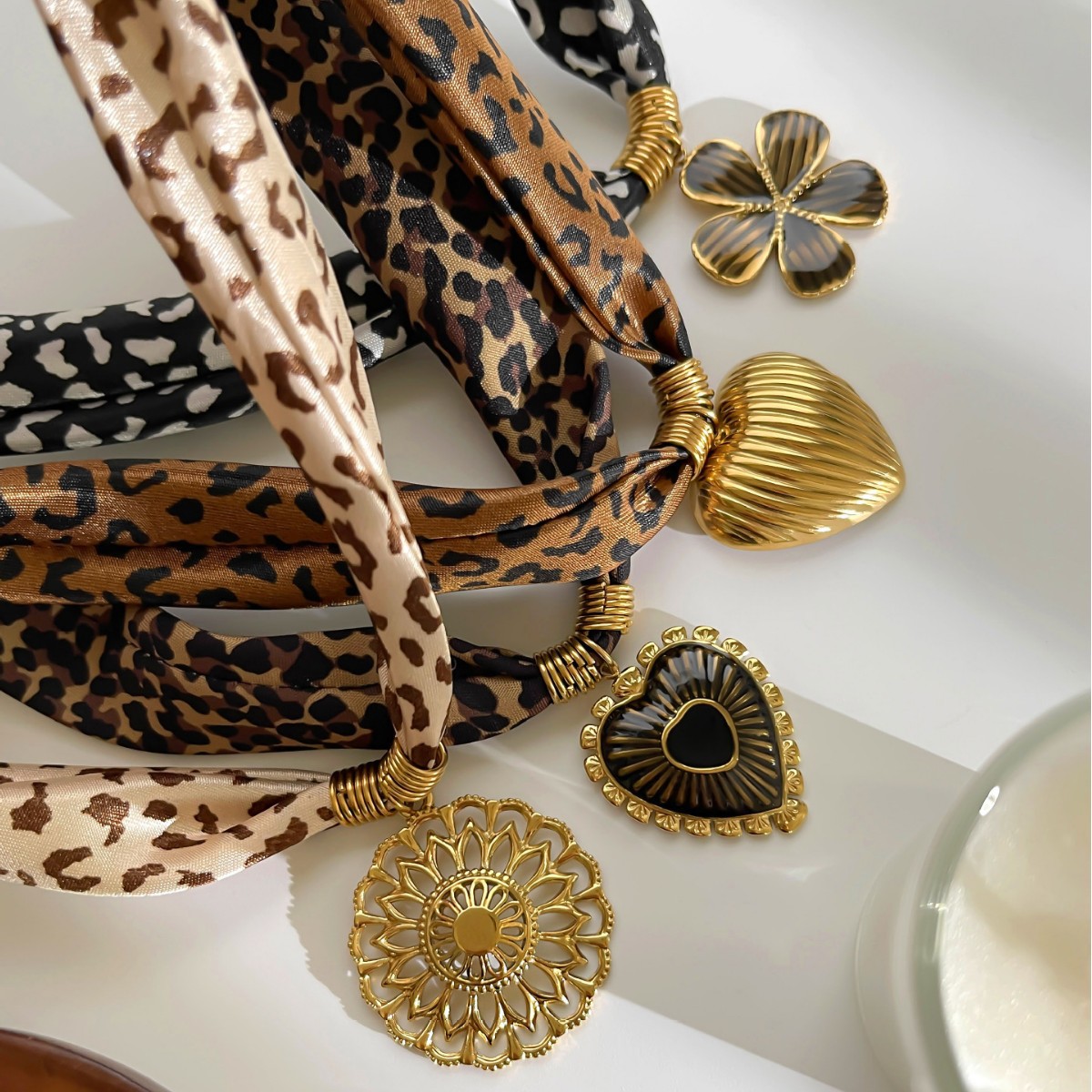 Cross-Border Ins Plated 18K Gold Peach Heart Geometric Asymmetrical Pendant Sexy Leopard Print Silk Scarf Necklace Clavicle Chain for Women in Stock