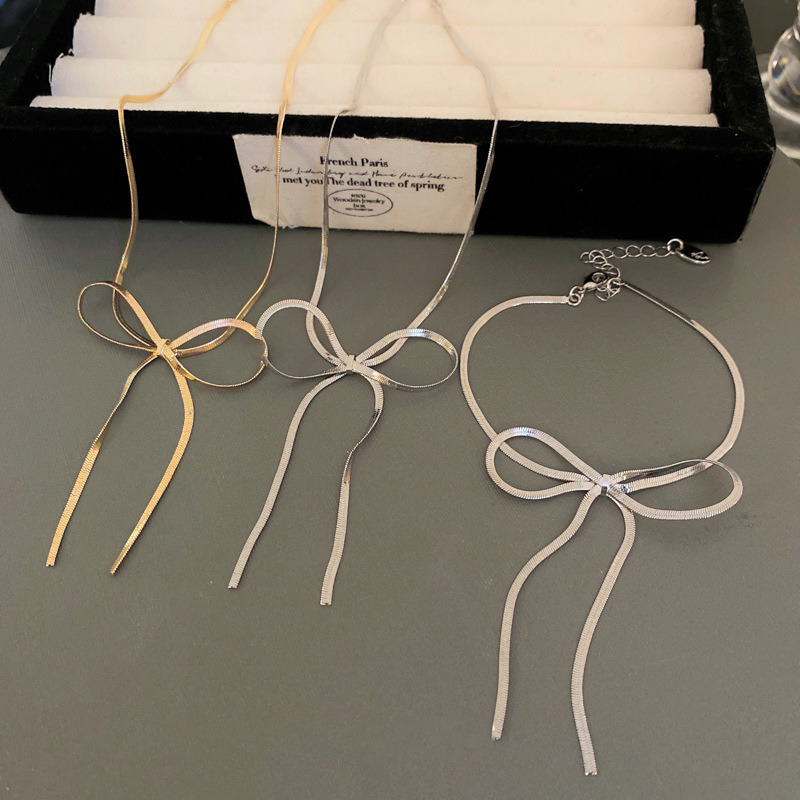 Minimalist Bow Snake Bone Chain Necklace, Cool Style, Sexy, Fashionable, Niche, High-End Women's Accessory, 2024 New Model