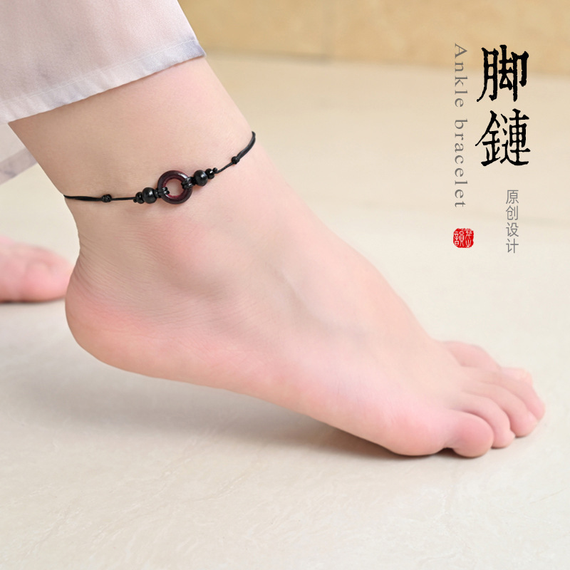 Cross-border new simple wooden bead circle anklet European and American bracelet creative women's men's beach jewelry sexy foot ornaments