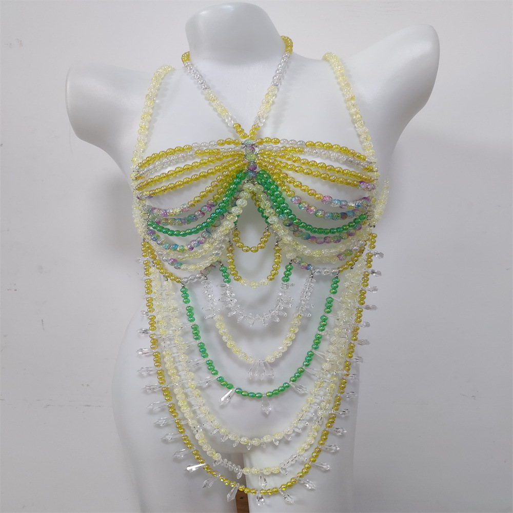 2024 Europe and the United States cross-border hot selling handmade pearl acrylic neck necklace multi-layer sexy hot girl tube top vest