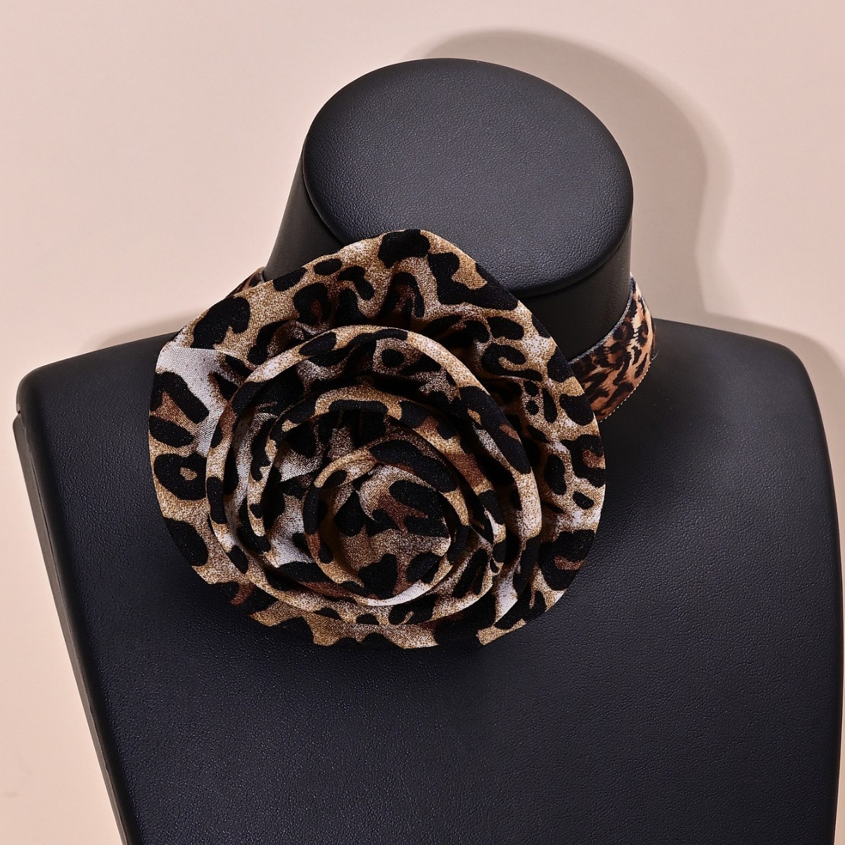 Leopard Rose Necklace for Women Cross-Border European and American Retro Sexy Hot Girl Large Flower Choker Bohemian Style Necklace
