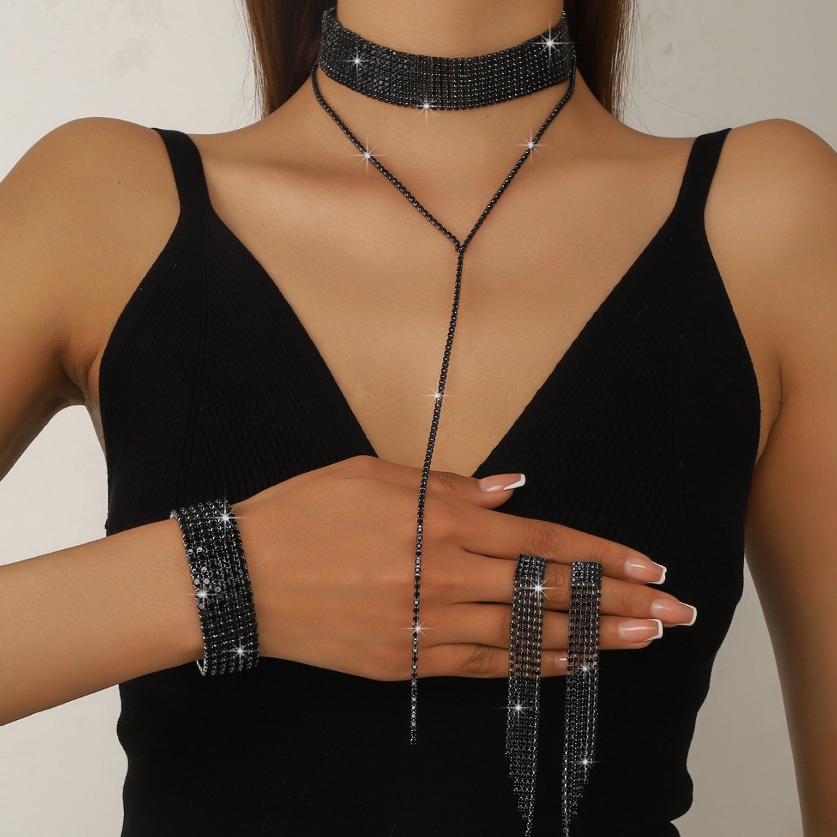 European and American style multi-layer stacked rhinestone tassel clavicle chain sexy sweet cool hot girl round bead chain metal necklace women
