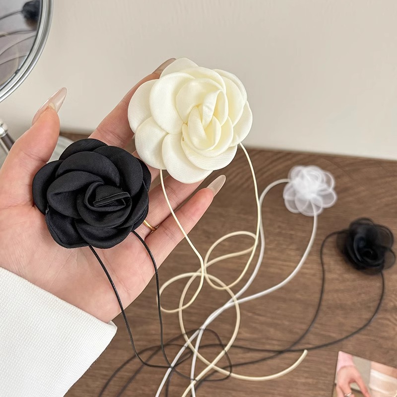 Rose Necklace Camellia Series Choker Black and White Flowers Sexy Clavicle French Style Chanel Atmosphere
