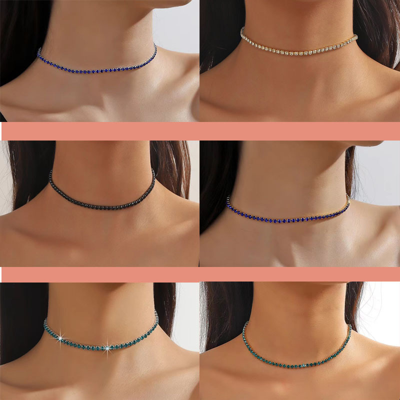 Diamond Simple European and American Necklace Women's Neck Single Row Sexy Jewelry Flash Diamond Neck Chain Clavicle Chain