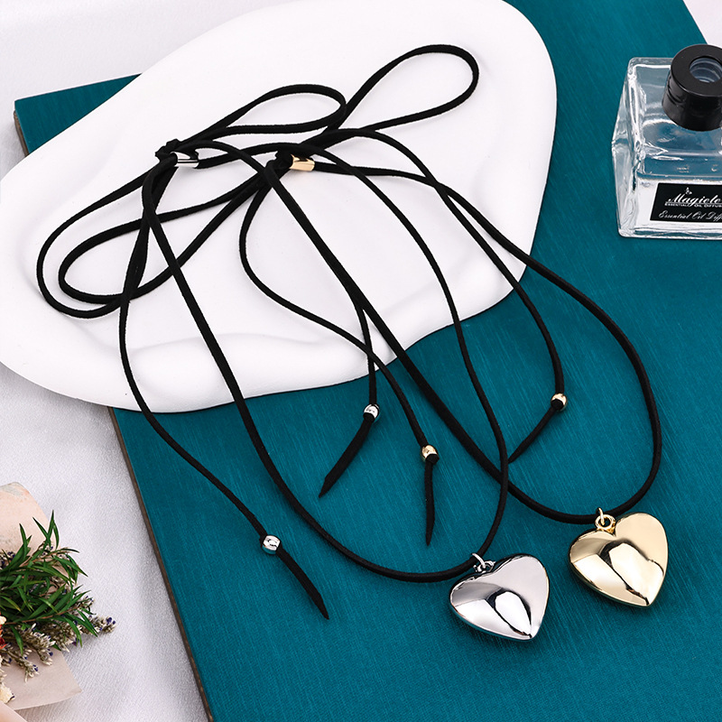 European and American Sexy Ladies Layered Velvet Rope Chain Gold Silver Heart Choker Necklace Jewelry Supply Wholesale