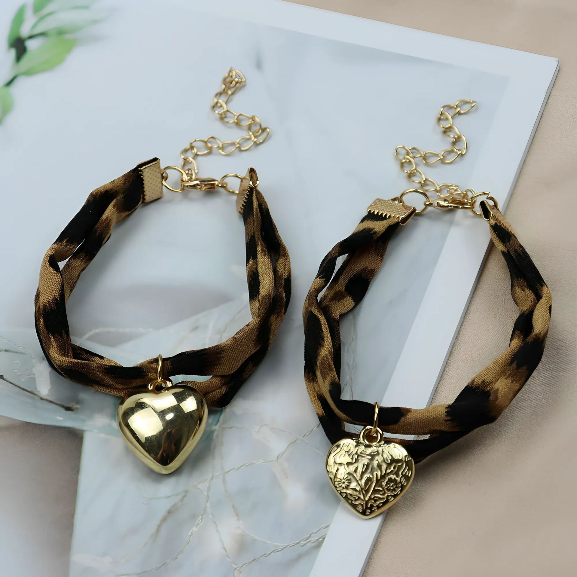 European and American Cross-Border Fashion Exquisite Heart Pendant Bracelet for Women, Sexy Leopard Print Heart Bracelet