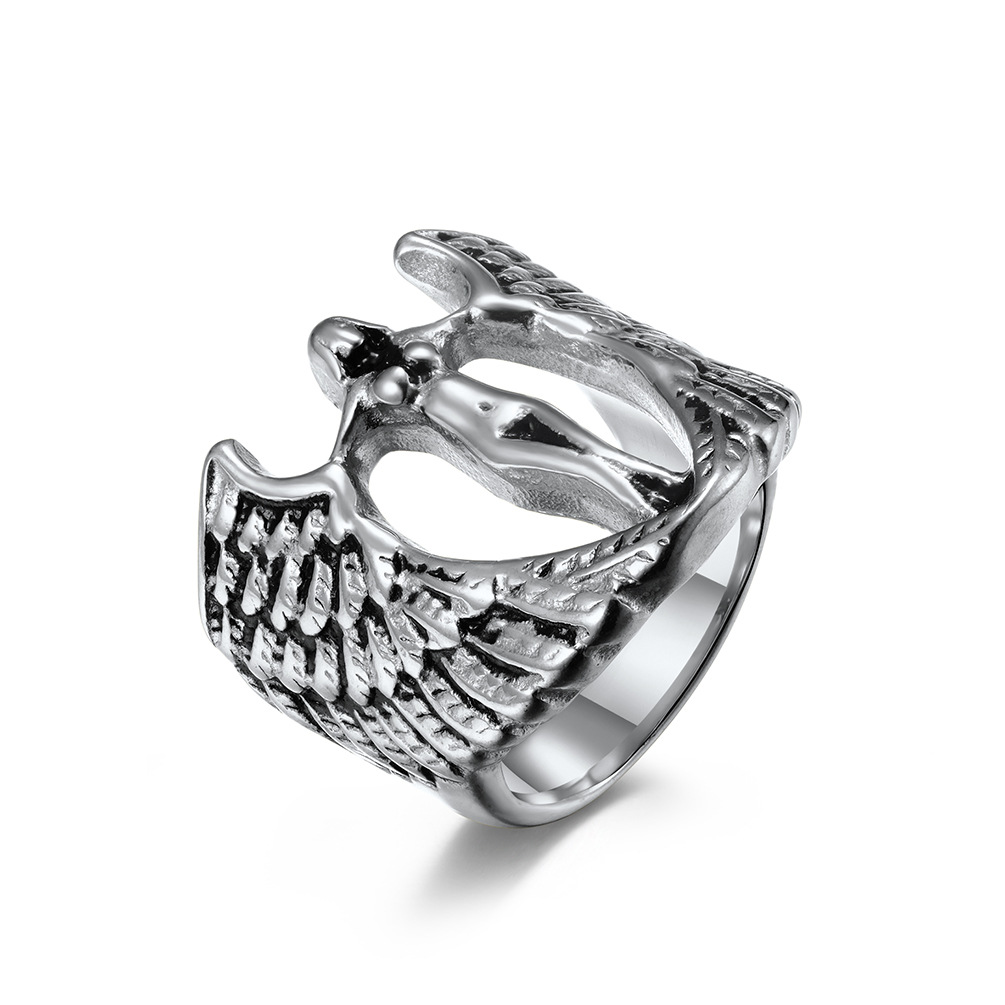 Cross-Border Hot-Selling Personalized Goddess Wing Shape Ring Titanium Steel Ring Sexy Goddess Stainless Steel Hip-Hop Hand Jewelry