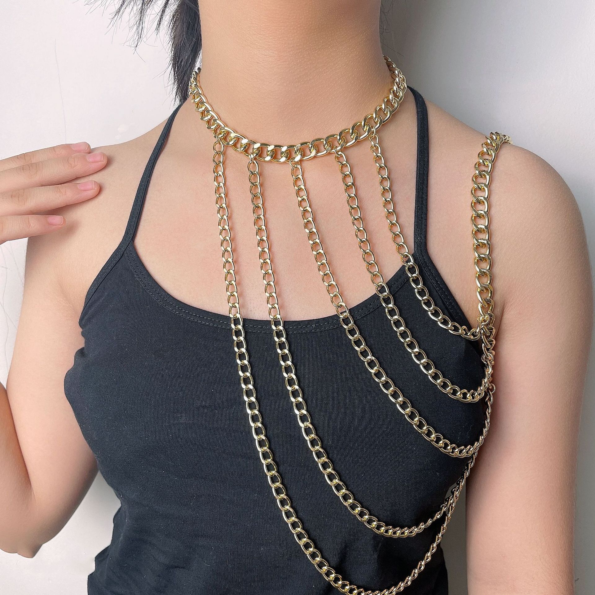 Chest Chain Pure Sexy Necklace Women's Body Chain Internet Popular ins Chain Spice Girl Small Camisole Accessories Clavicle Chain
