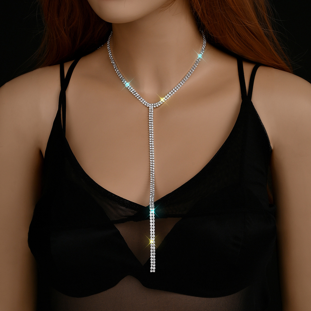 Sexy Diamond Tie Choker Long Necklace Internet Celebrant Distinctive Necklace Neck Jewelry Short Collarbone Chain