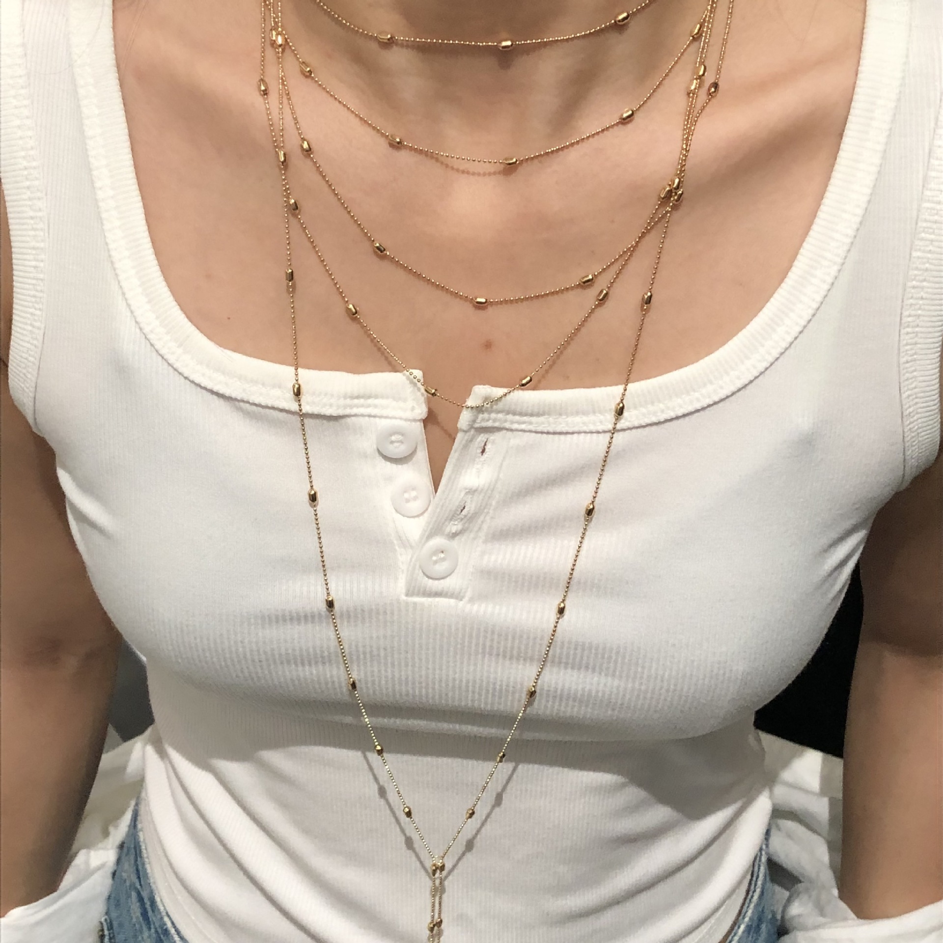 European and American Cross-Border Silver Double-Layer Cuban Silver Bead Necklace Women's Fashion Sexy Simple Versatile Creative Jewelry Wholesale