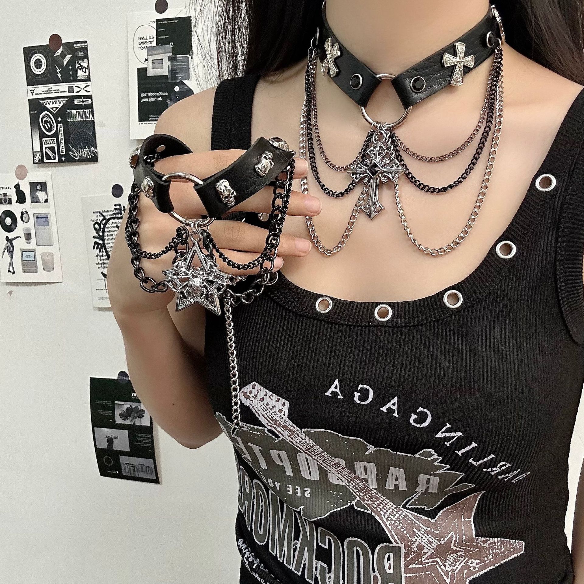 European and American Cross-Border Punk Rock Black Leather Necklace Sexy Sweet Cool Stylish Fashion Choker Gothic Necklace Jewelry