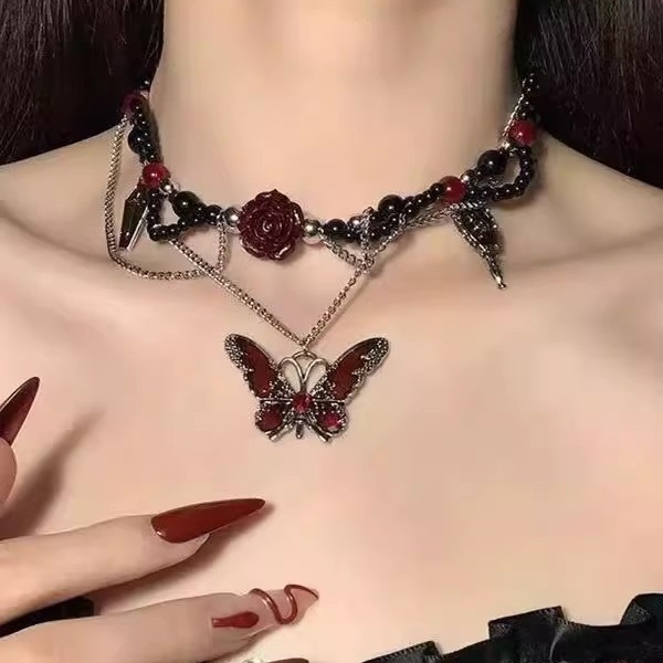 Halloween Dark Scarlet Butterfly Choker Necklace Retro Accessible Luxury Gothic Punk Style Sexy Sexy Necklace