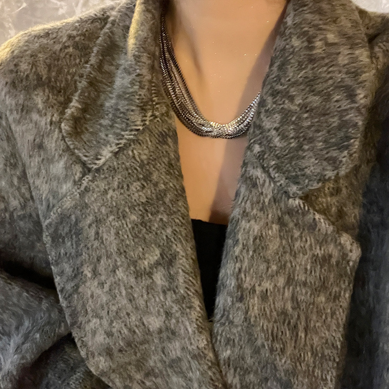 Personalized Niche Design Sense Multi-layer Metal Necklace European and American Sexy Exaggerated Clavicle Chain Advanced Style Autumn and Winter Woolen Chain