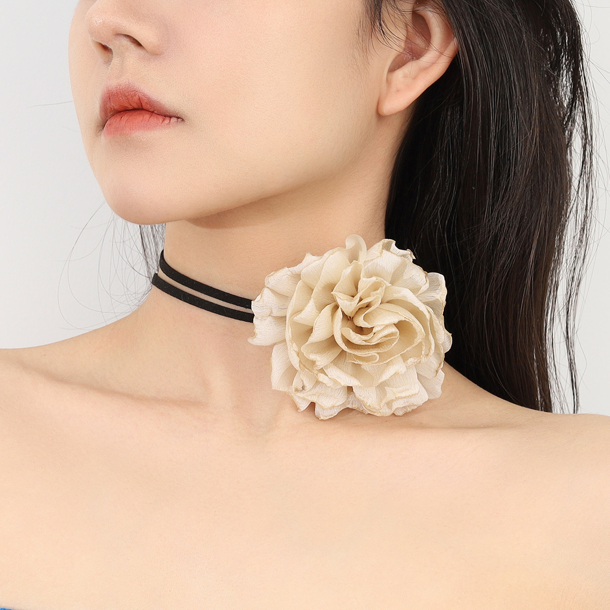 Rose Neckband Necklace Camellia Series Choker Black and White Flowers Sexy Collarbone French Style Small Fragrance Atmosphere