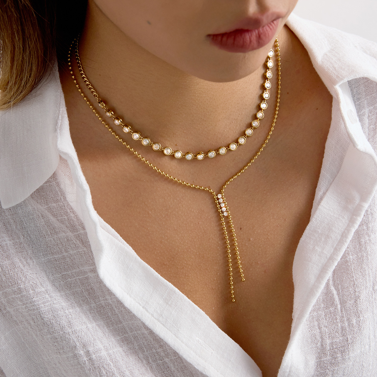 European and American Jewelry Cross-border E-Commerce Explosions Sexy Beam Neck Diamond Necklace Jewelry Copper Bead Mesh Body Chain Necklace