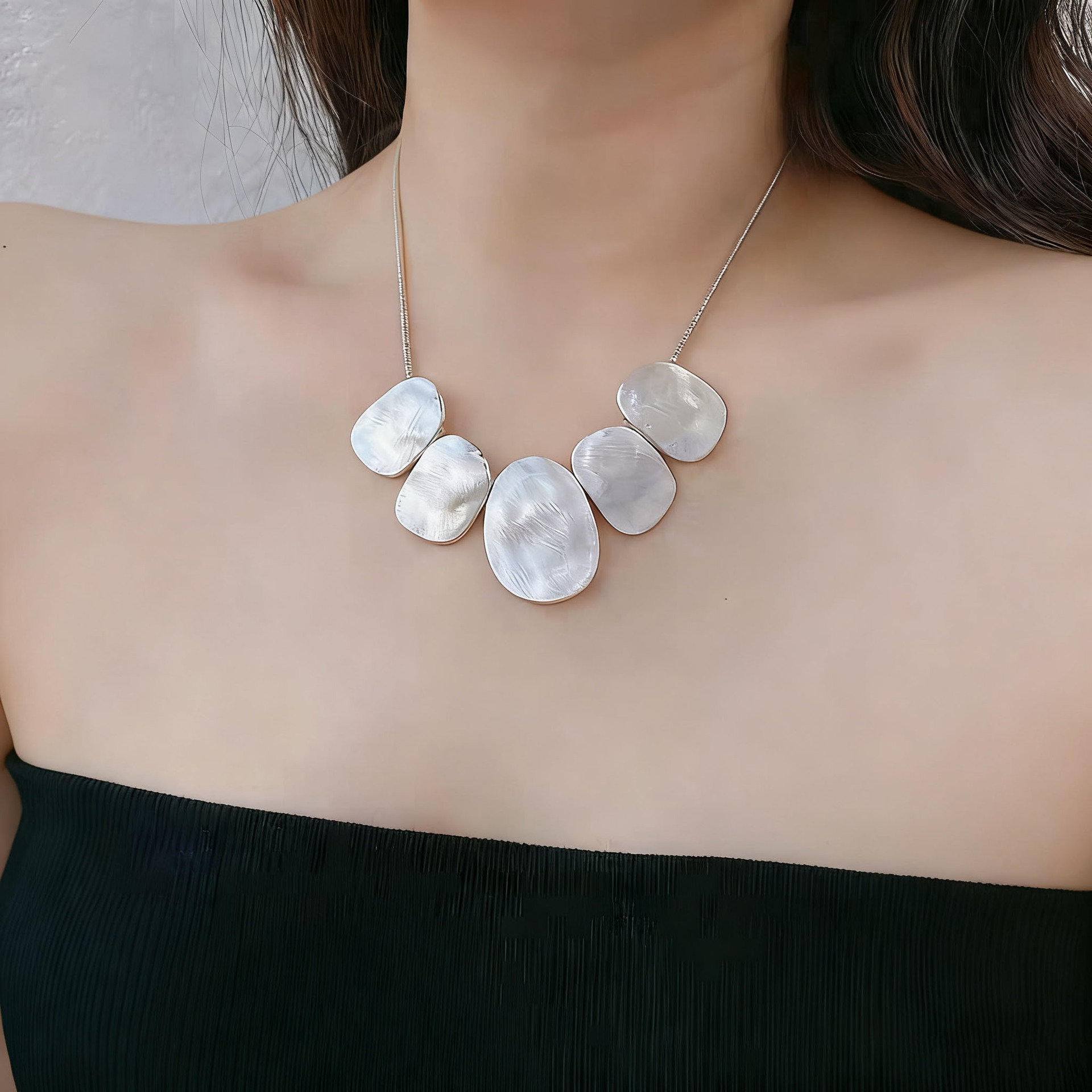 Minimalist Geometric Metal Brushed Pendant Necklace Fashion Sexy Design Niche Light Luxury High-End Snake Bone Chain Choker