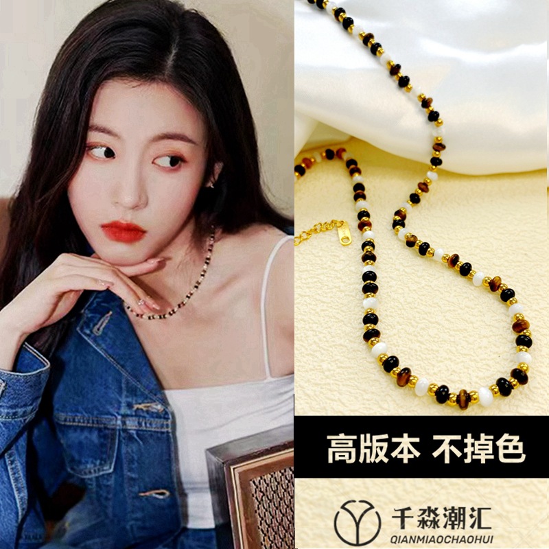 Long-lasting color-preserving natural Tiger Eye Stone beaded necklace high-grade retro clavicle chain niche design sexy temperament light luxury