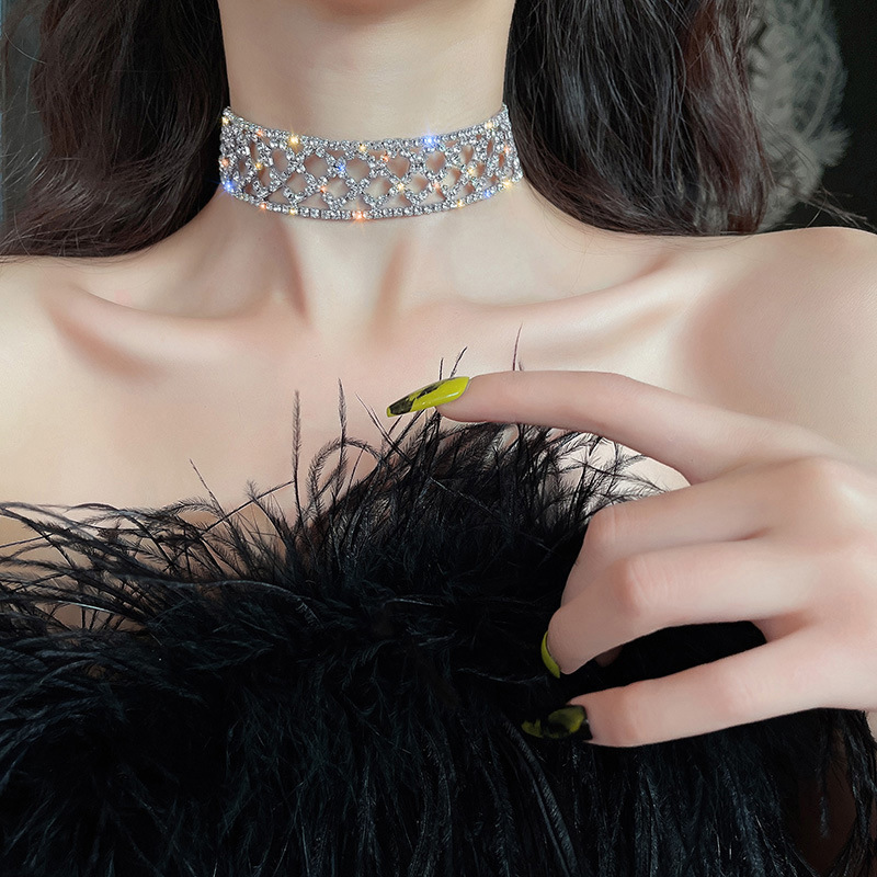 European and American Sexy Cyber Popular Super Flash Rhinestone Neck Chain chocker Clavicle Chain Women's Neck Jewelry South Korea Short Necklace
