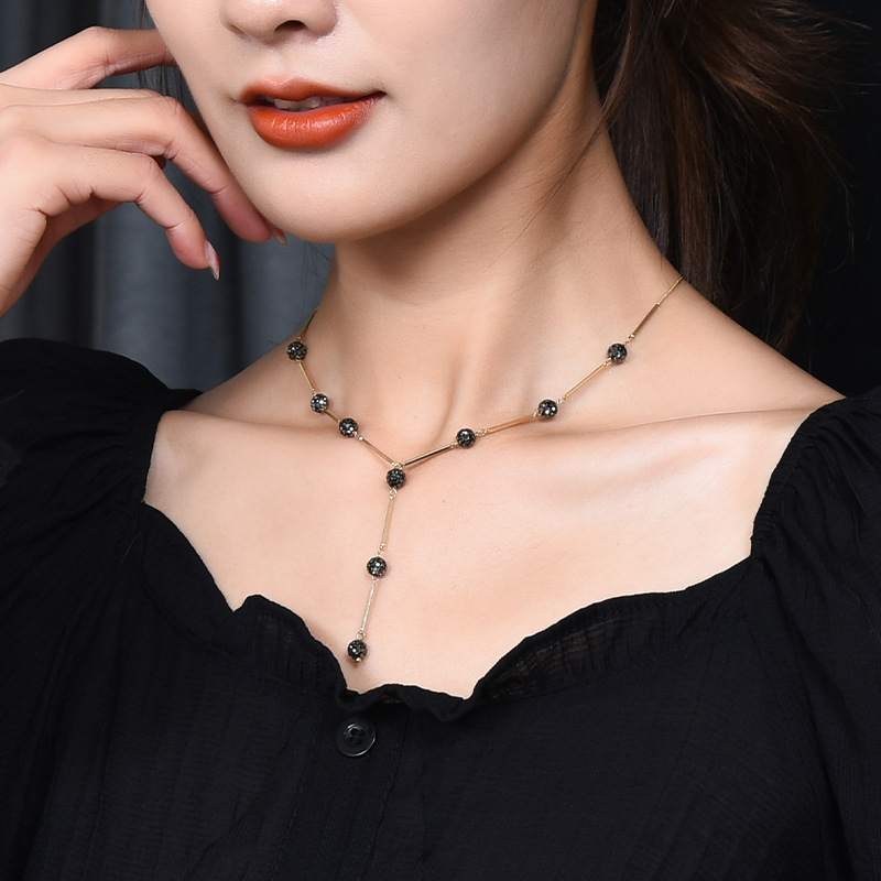 Factory direct Korean sleeping diamond ball Y word necklace female sexy cold wind clavicle chain lover gift accessories tide