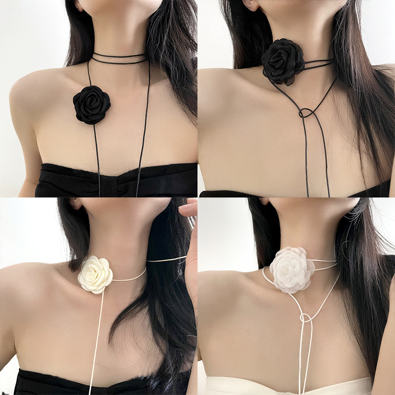 Milk Apricot Super Fairy Peony Flower Small Fragrance Retro Necklace Lace Choker Collar Sexy Neck Strap Princess Style Belt