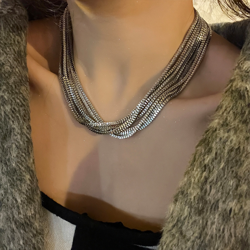 Personalized Niche Design Sense Multi-layer Metal Necklace European and American Sexy Exaggerated Clavicle Chain High-end Sense New Woolen Chain