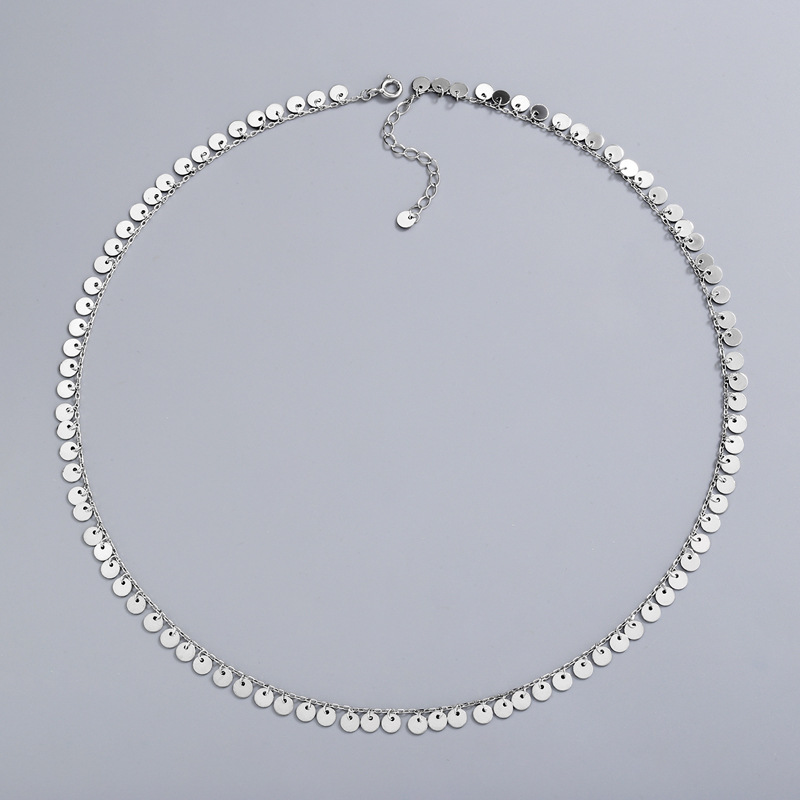 Korean Style Simple Distinctive s925 Sterling Silver Round Brand Tassel Necklace Women's Niche Creative Sexy Collarbone Chain Accessories