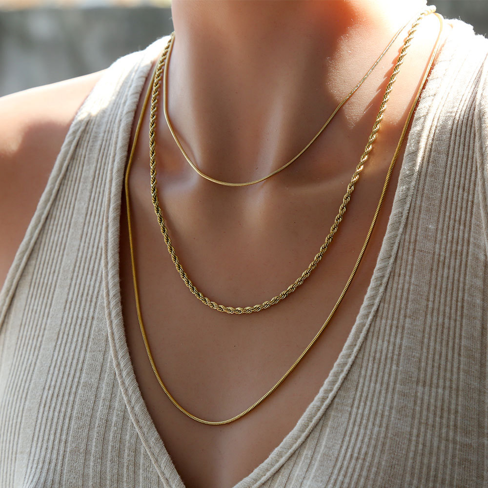 European and American Ins Blogger's Same Style Street Shooting Sexy Three-Layer Twist Snake Bone Titanium Steel Electroplated 18K Gold High Color Retention Necklace