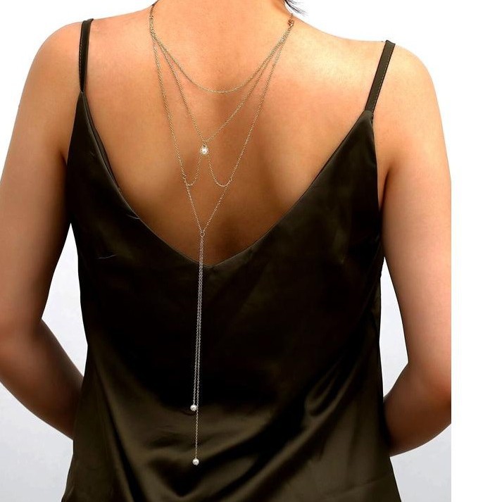 European and American fashion Simple Sexy temperament necklace water drop Pearl tassel pendant back chain