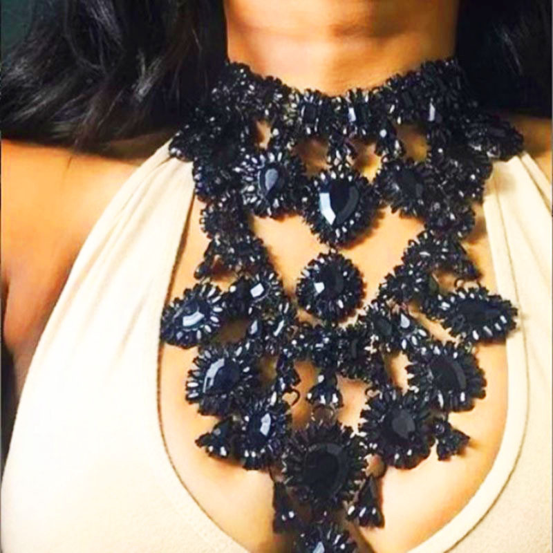 European and American exaggerated fashion sexy electrophoresis black necklace women's long water drop multi-layer flower clothing chain wholesale