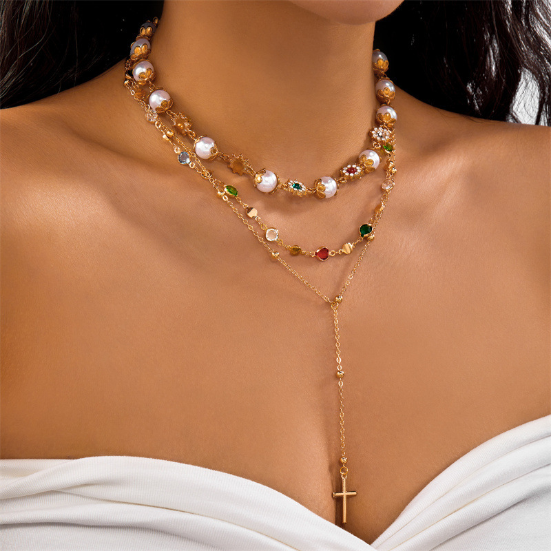 European and American New Hot Jewelry Simple Multi-layer Cross Necklace Women's Sexy Short Metal Three-layer Clavicle Chain