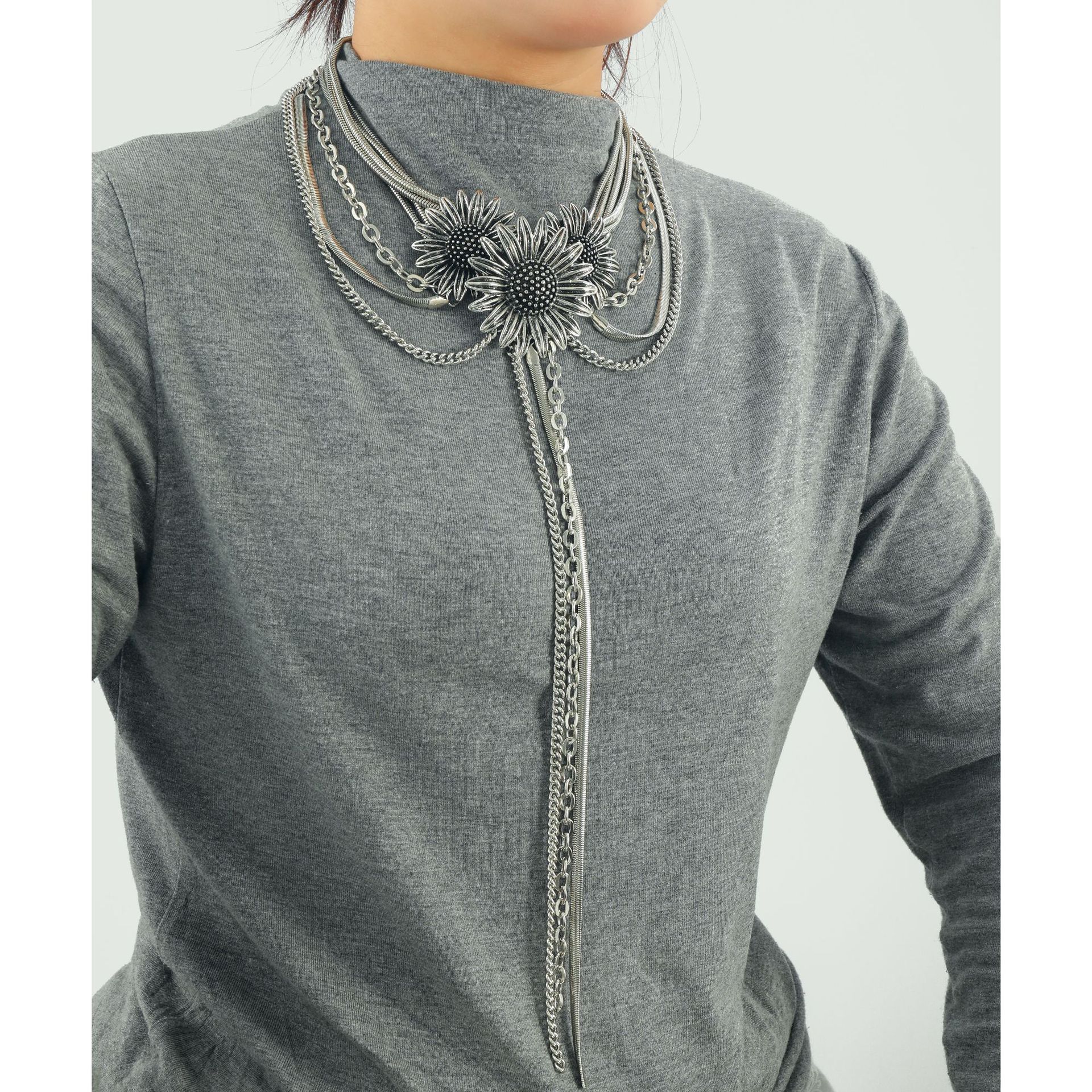 Korean Style American Style Autumn and Winter Niche Sexy Bow Love Black Rope Metal silver Simple Personalized Necklace